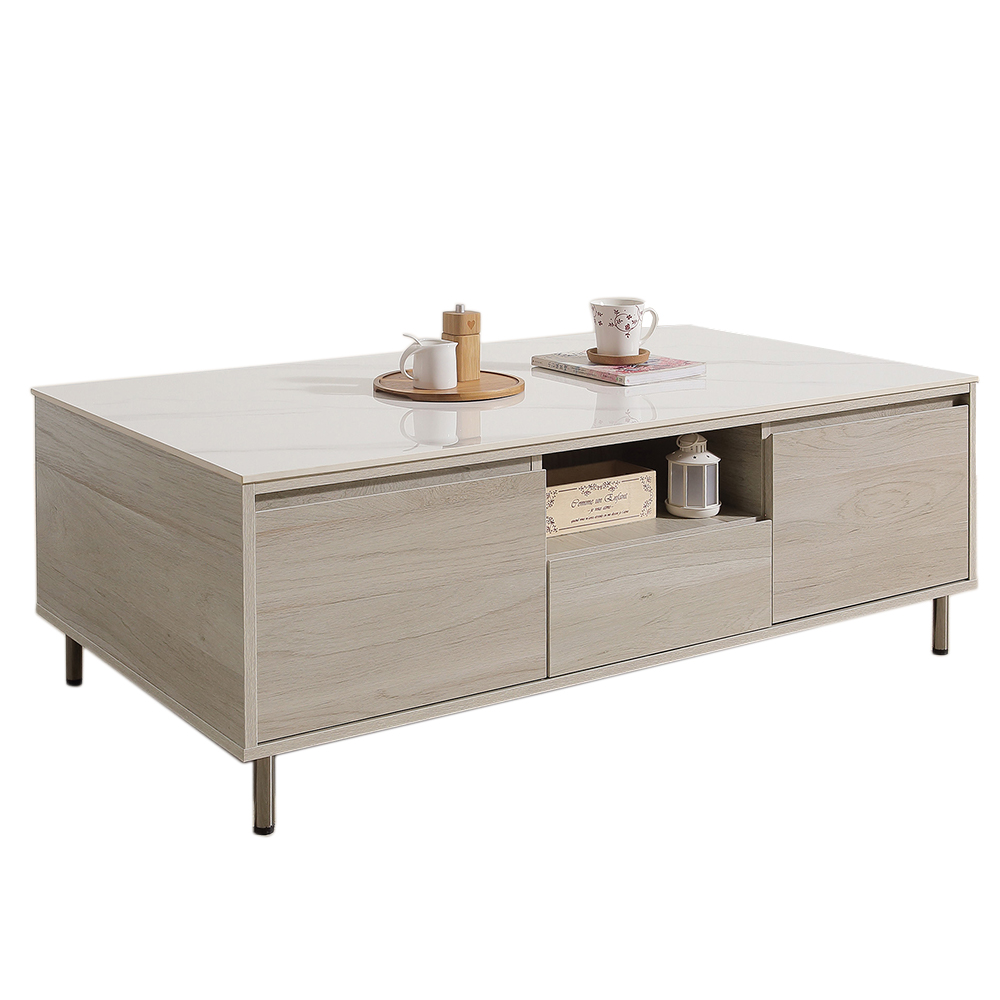 2. 桌面採12mm亮面雪山石岩板面,具耐磨、耐熱特性