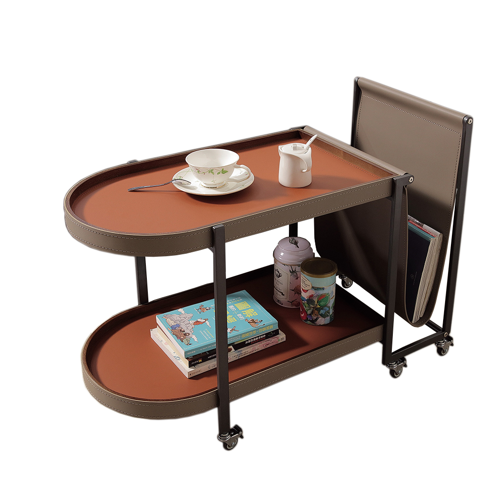 尺寸:巴斯特雙層馬鞍皮推車茶几