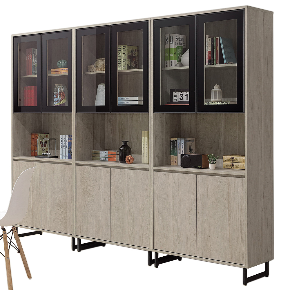 3. 書櫃門採鋁條木門+5mm強化黑框烤漆玻璃