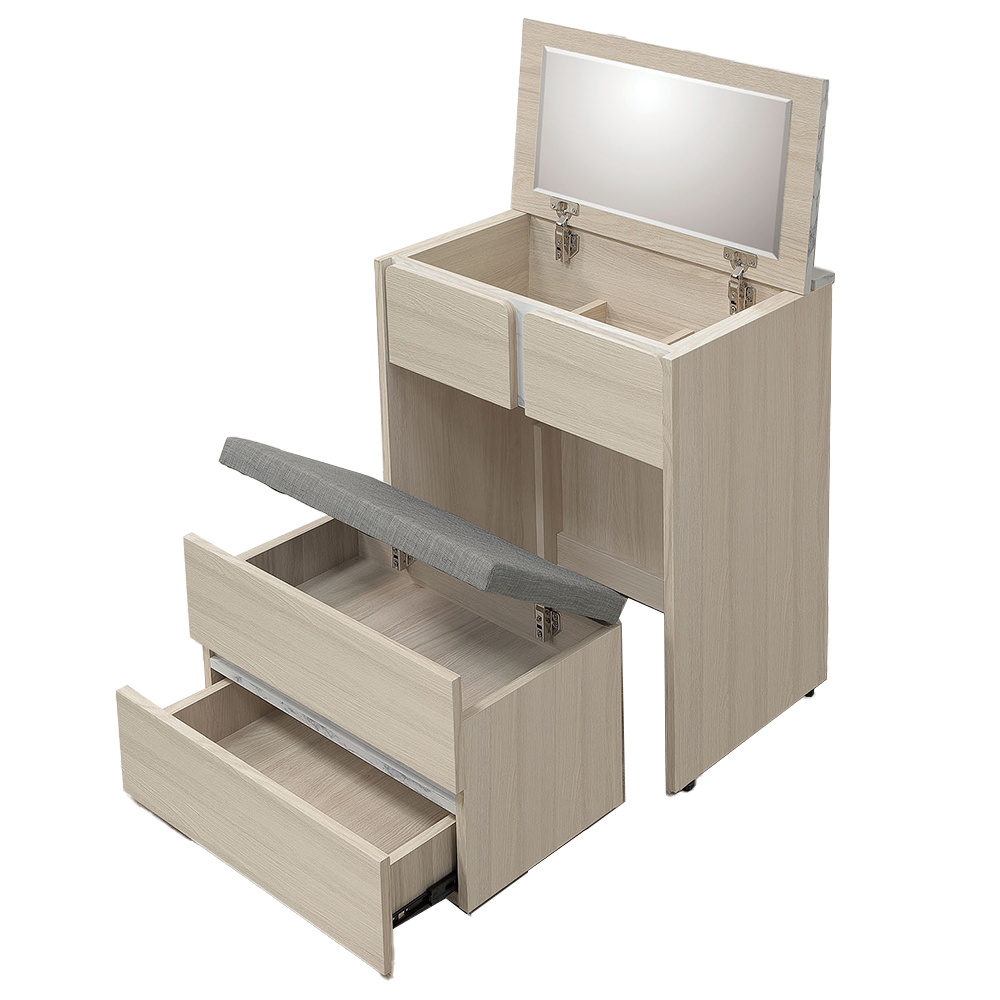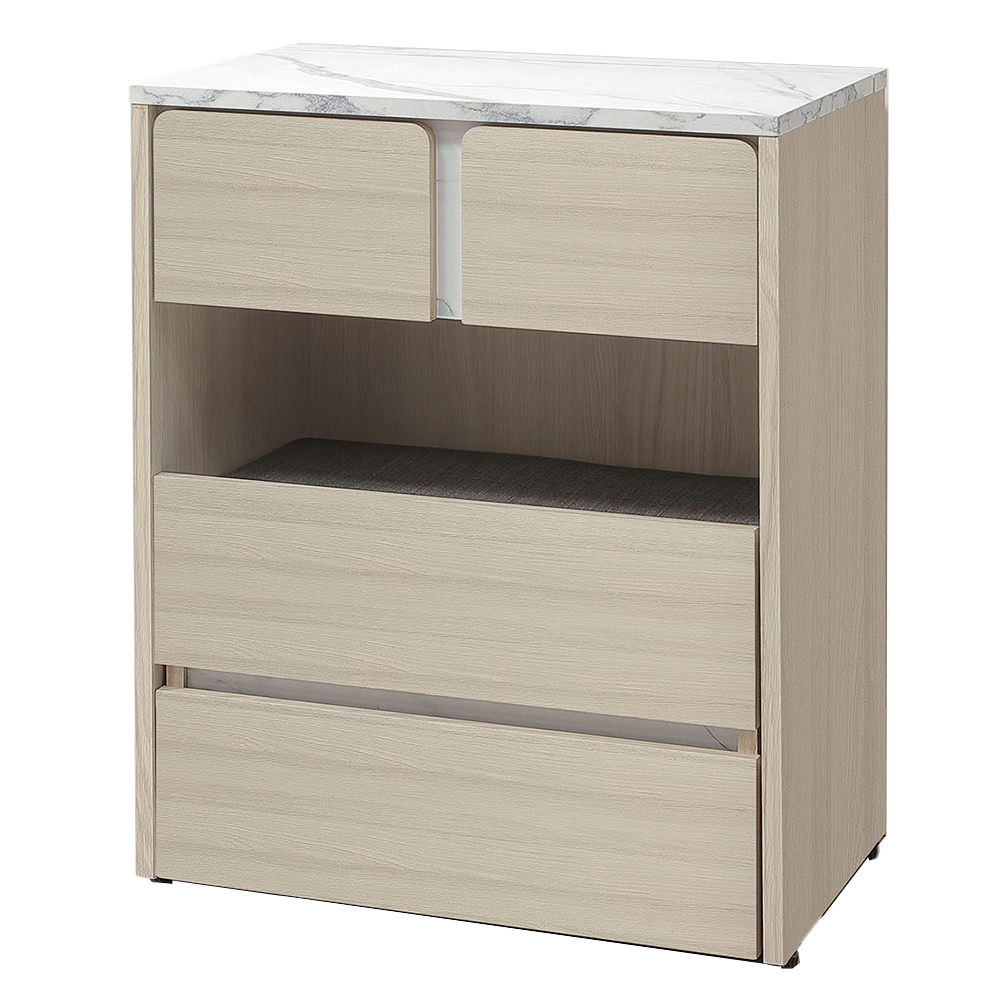 材質:1.正面、側板與抽牆採用台灣製造A級環保木心板,專利技術同調木紋鋼刷壓紋,猶如實木質感