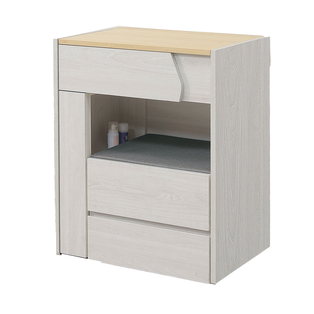 材質:1.正面、檯面、側板、抽牆採用台灣製造A級環保木心板,採專利技術同調木紋鋼刷壓紋,猶如實木質感