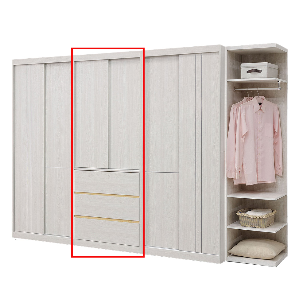 3. 抽屜採用台灣製鋼珠滑軌,門片採用油壓緩衝鉸鏈