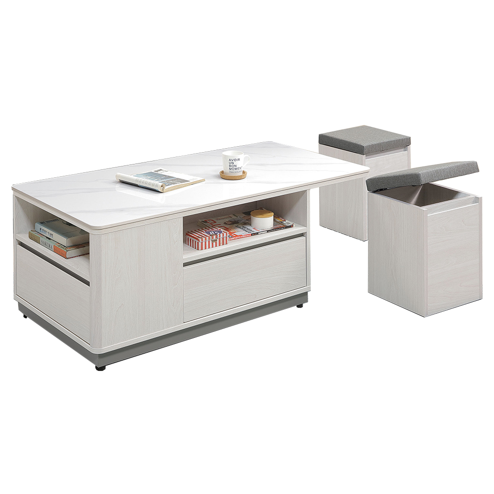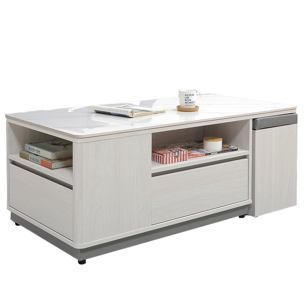 2. 桌面採12mm亮面雪山石岩板面,具耐磨、耐熱特性