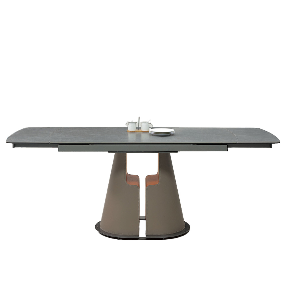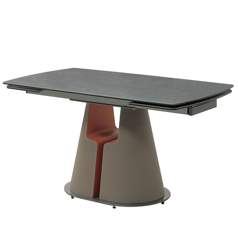 材質:1. 採6mm維克淺灰陶板貼合8mm強化玻璃桌面,具耐熱抗污好清理特性