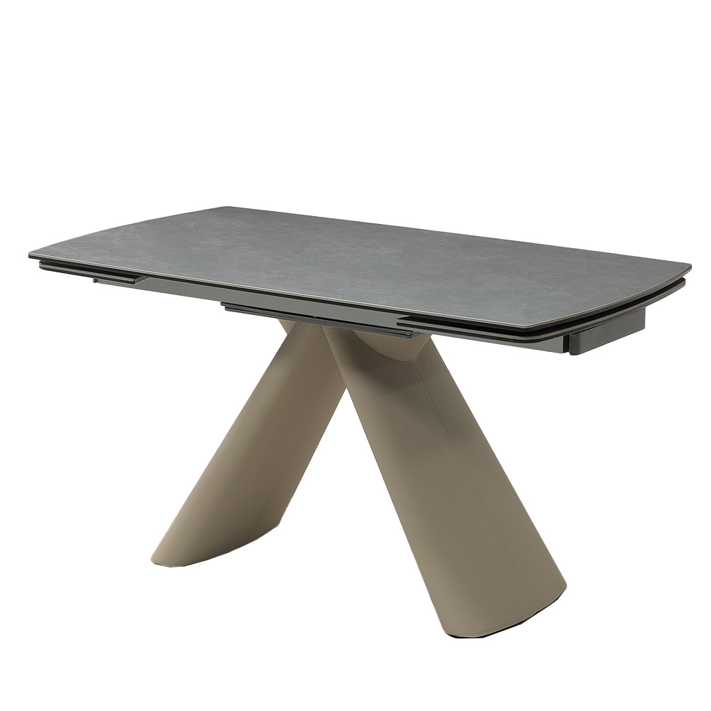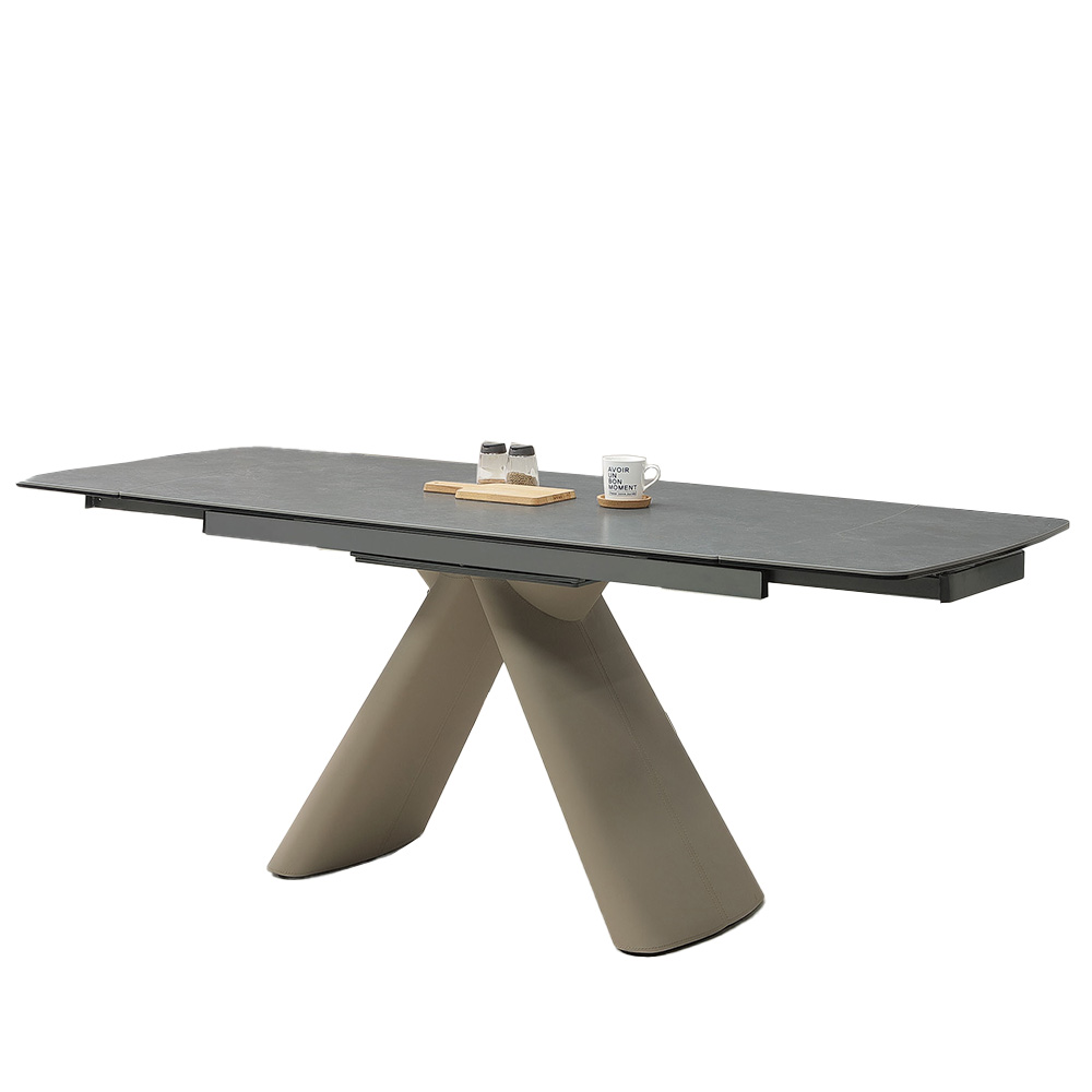 材質:1. 採6mm維克淺灰陶板貼合8mm強化玻璃桌面,具耐熱抗污好清理特性