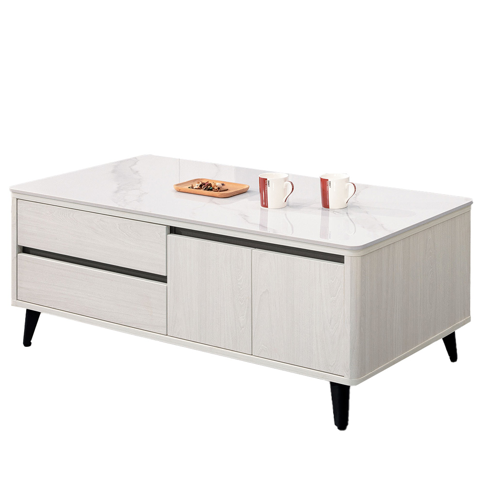 2. 桌面採12mm亮面雪山石岩板面,具耐磨、耐熱特性