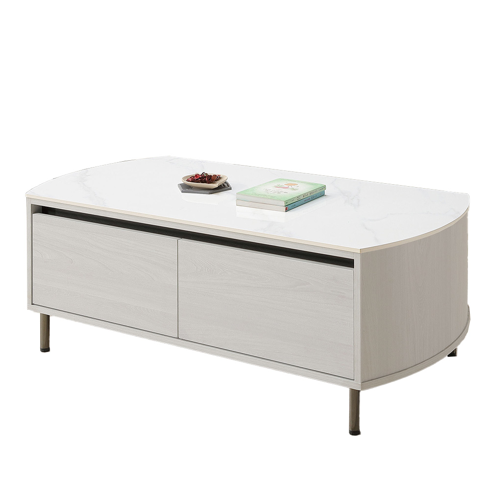 2. 桌面採12mm亮面雪山石岩板面,具耐磨、耐熱特性