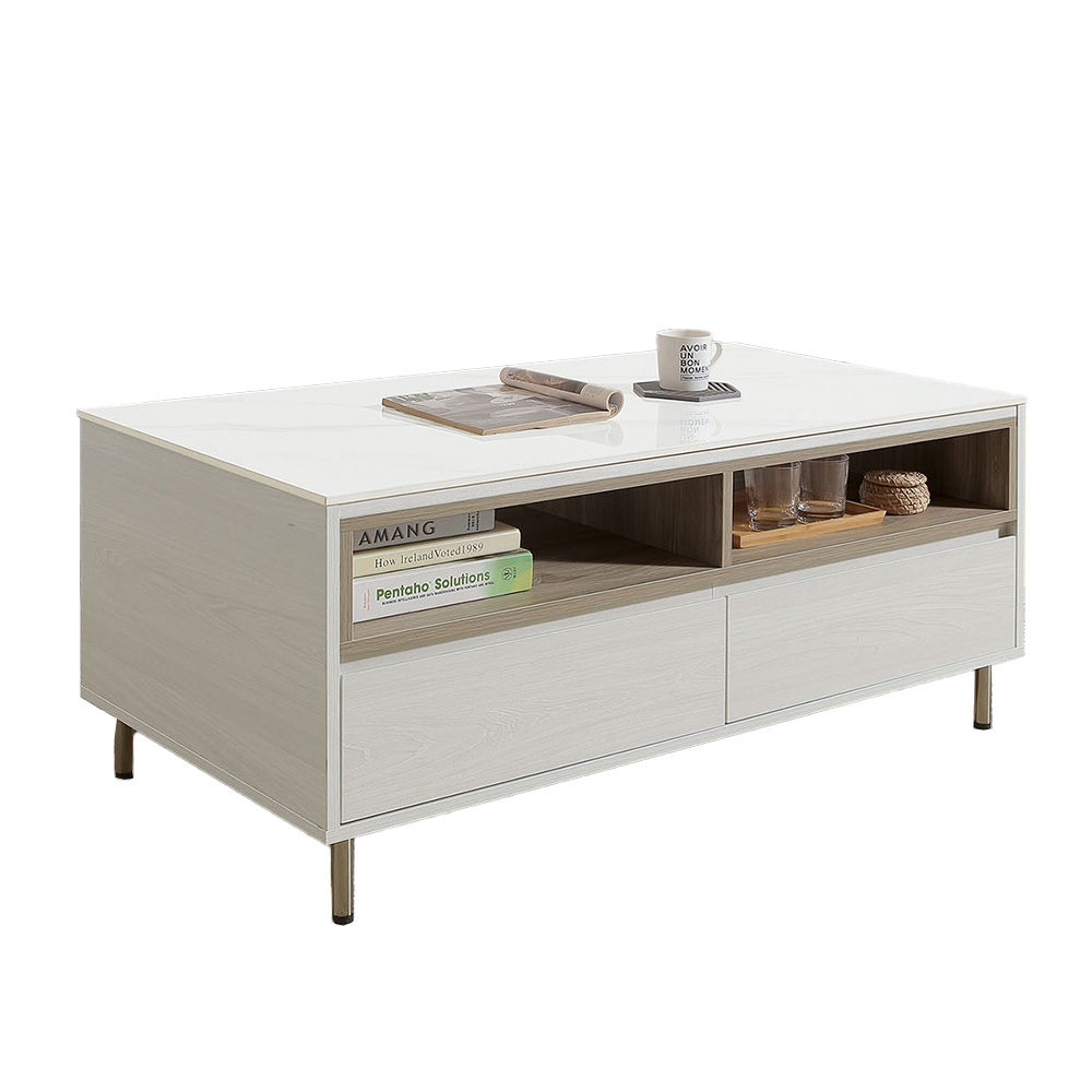 2. 桌面採12mm亮面雪山石岩板面,具耐磨、耐熱特性