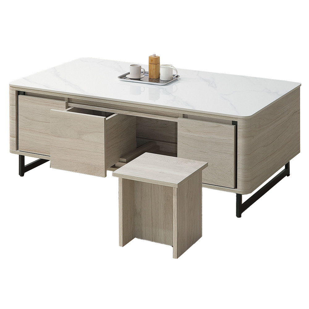 2. 桌面採12mm亮面雪山石岩板面,具耐磨、耐熱特性