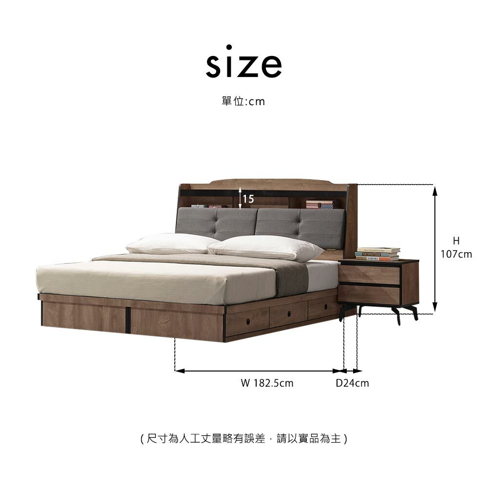 床頭正面0.45mm封邊,可掀式收納,附黑色三插USB插座方便充電.有斷電功::能,床頭墊為台灣製(無塑化劑)亞麻布紋貓抓皮皮革.高密度泡棉