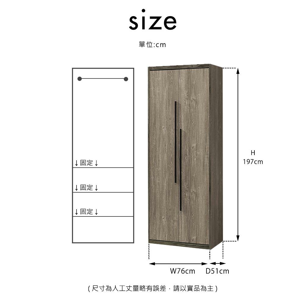 伊諾灰象2.5*6.5尺單吊隔板衣櫃
