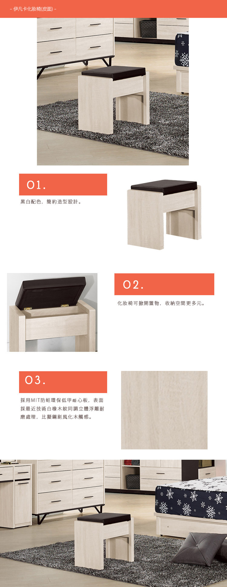 材質:採用MIT防蛀環保低甲醛心板,表面採最近技術白橡木紋同調立體浮雕耐磨處理,比擬鋼刷風化木觸感。