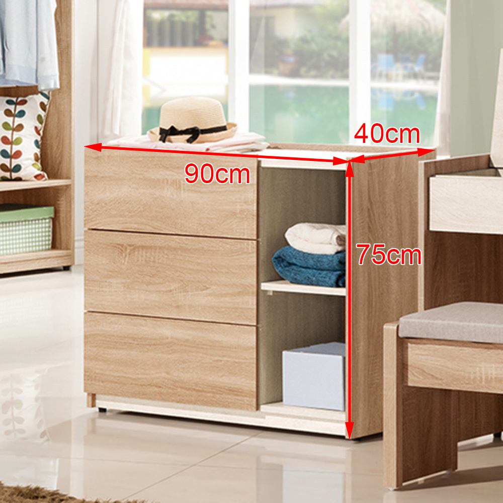 材質:正面、側面、面板採用台灣製造防蛀環保低甲醛木心板,表面最新技術白橡木紋同調立體浮雕耐磨處哩,比擬鋼刷風化木觸感,原切橡木與橡木洗白配色,營造明亮清新氛圍。