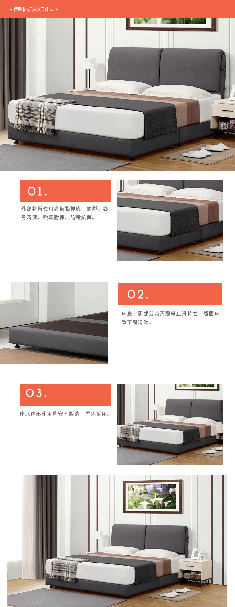 外部材質:使用高級貓抓皮(耐燃、容易清潔、強韌耐抓、防霉抗菌)加中間部分為天鵝絨止滑特性,內部使用柳安木。