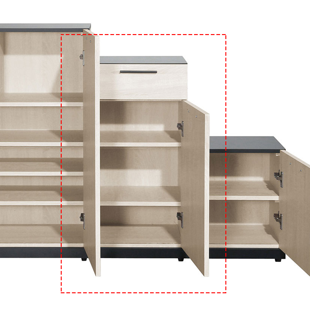 材質:全木心板材質.採用MIT 防蛀環保低甲醛A 級木心板,表面採專利技術木紋同調立體浮雕處理,比擬鋼刷實木視覺觸感,格板採用18mm 木心板,