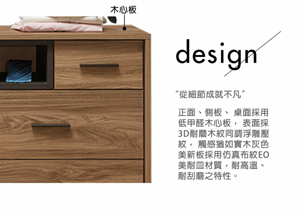 正面、側板、桌面採用國際低甲醛木心板