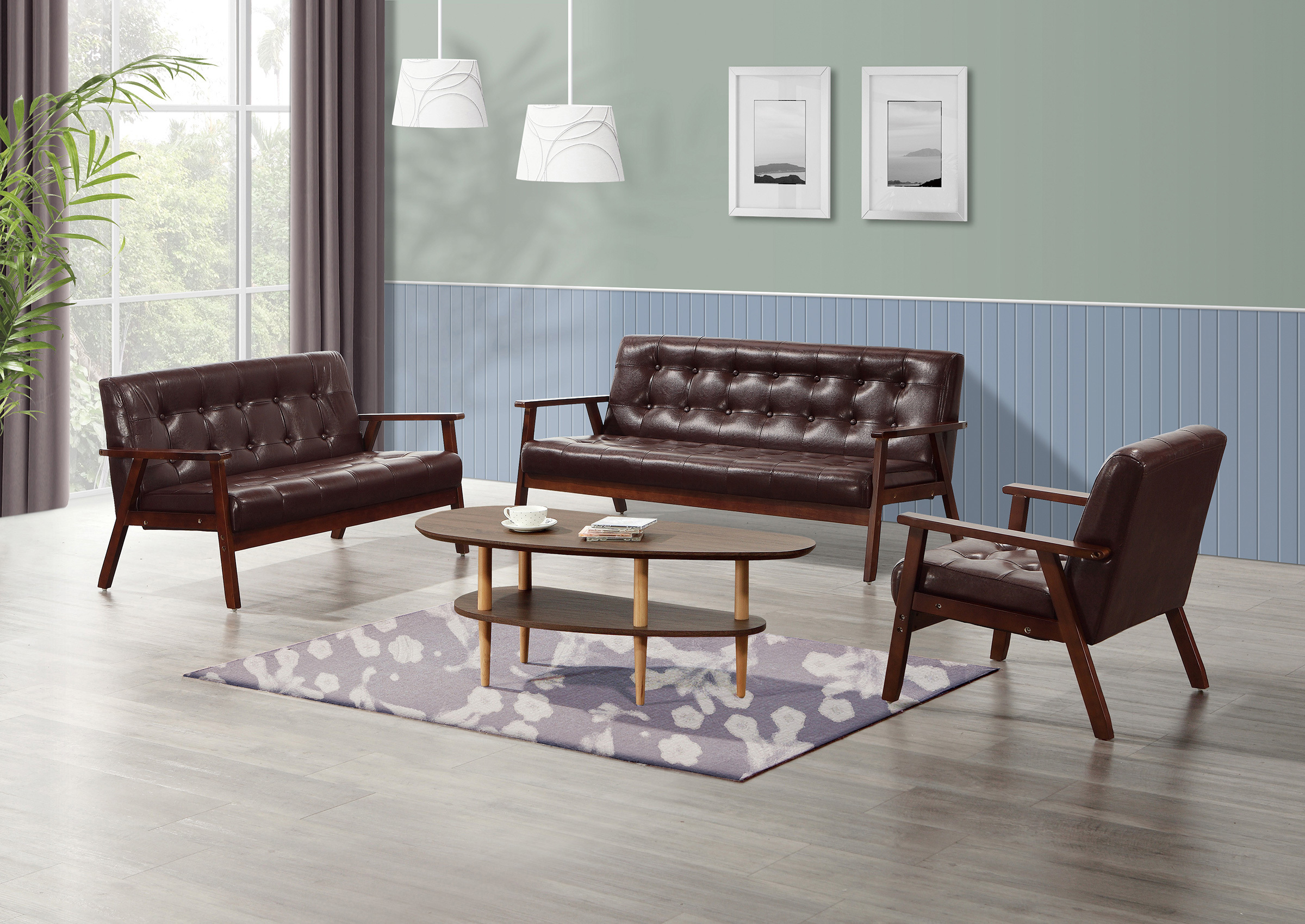 橡膠木實木椅身+高級PVC皮革、高密度泡棉