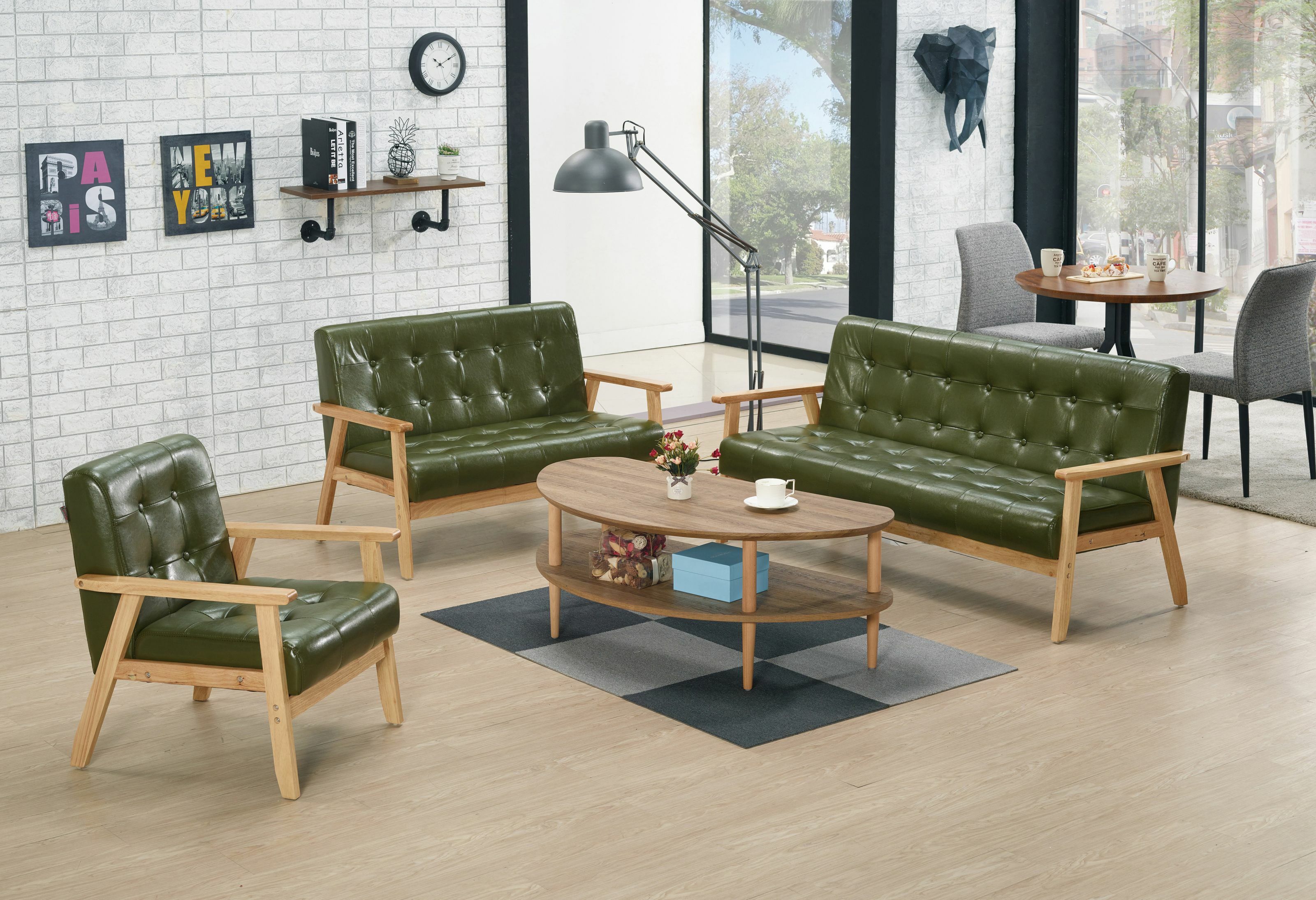 橡膠木實木椅身+高級PVC皮革、高密度泡棉