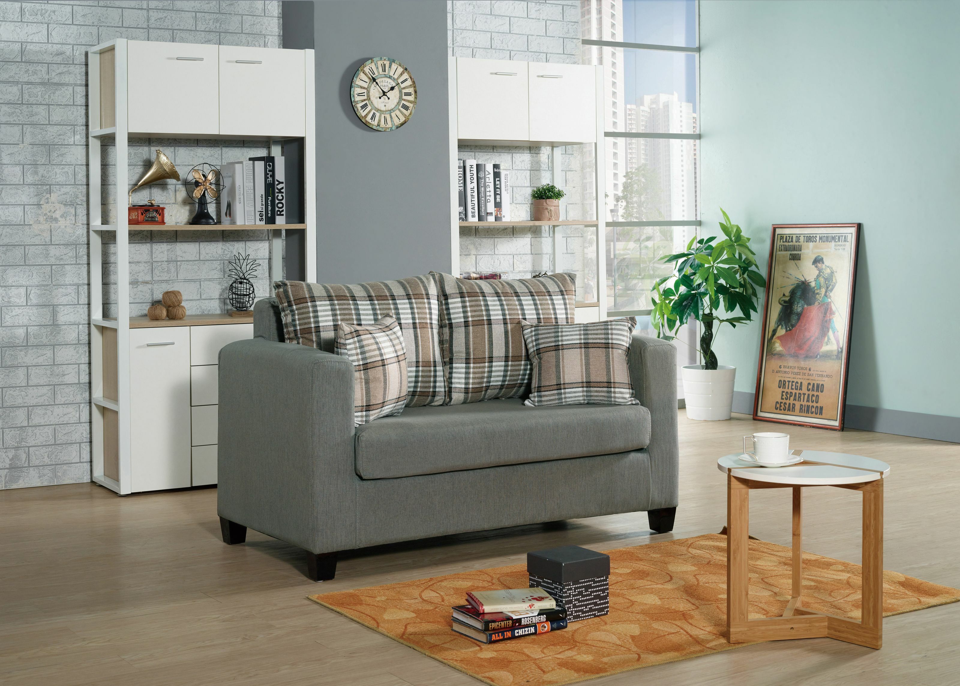 高級棉布(椅身不可拆洗,其餘皆可拆洗)、高密度泡棉+彈簧座包+實木腳