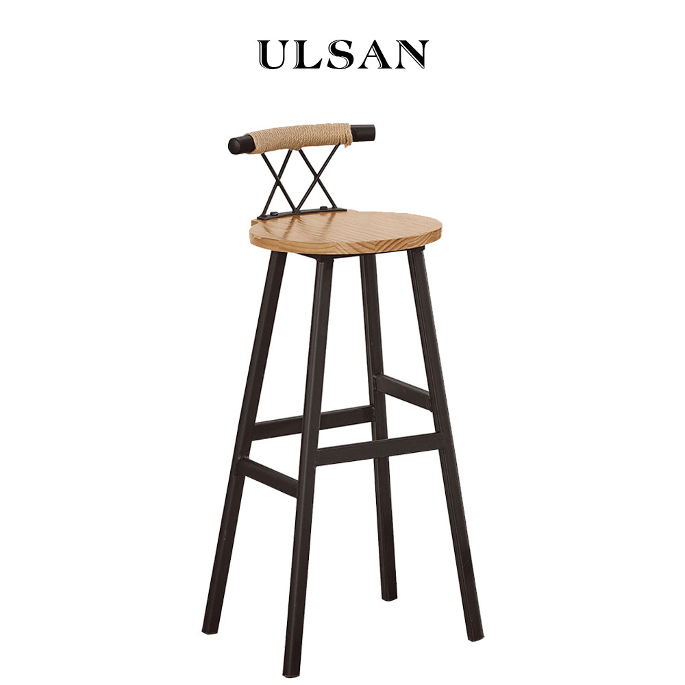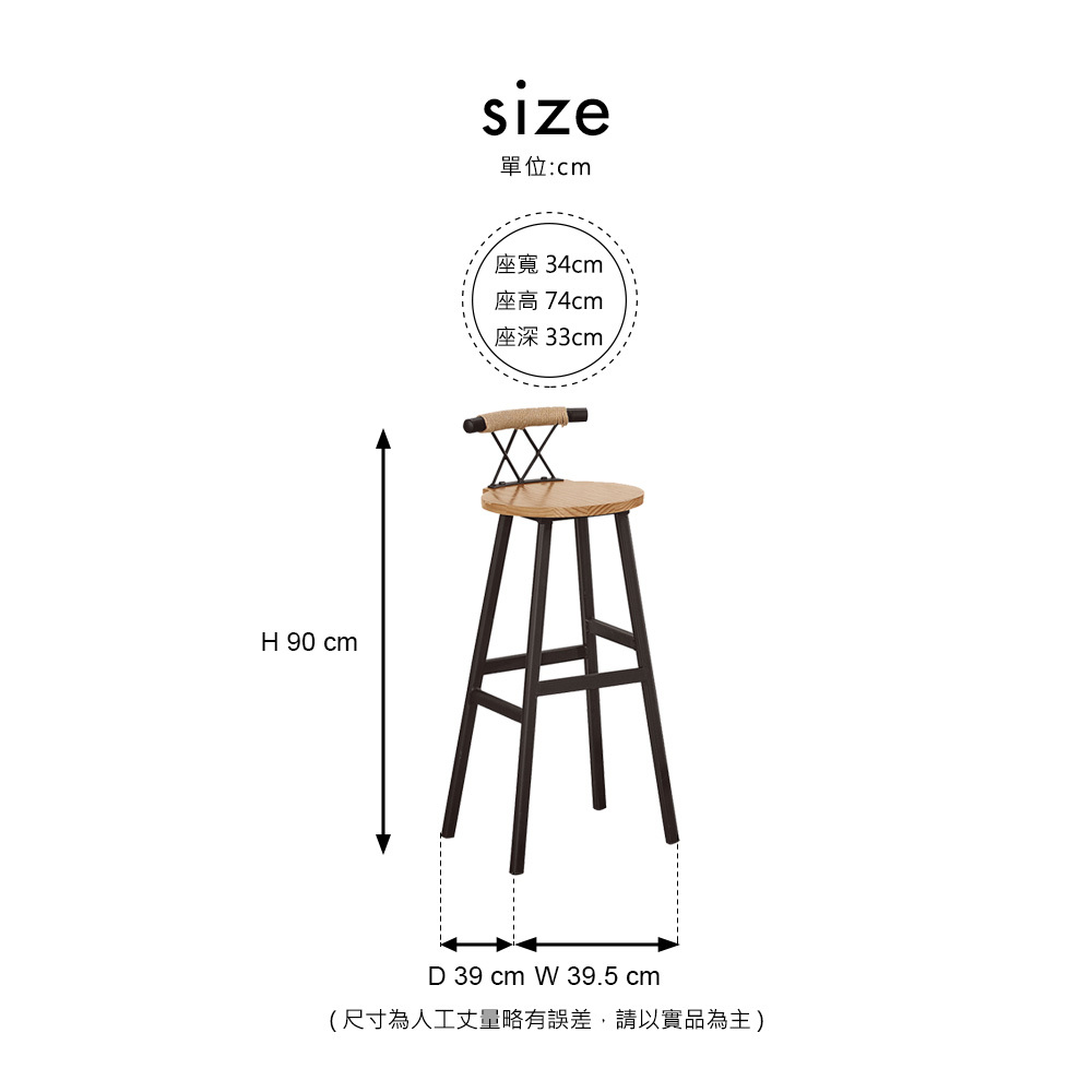 高級松木實木+麻繩+防鏽烤漆黑鐵腳