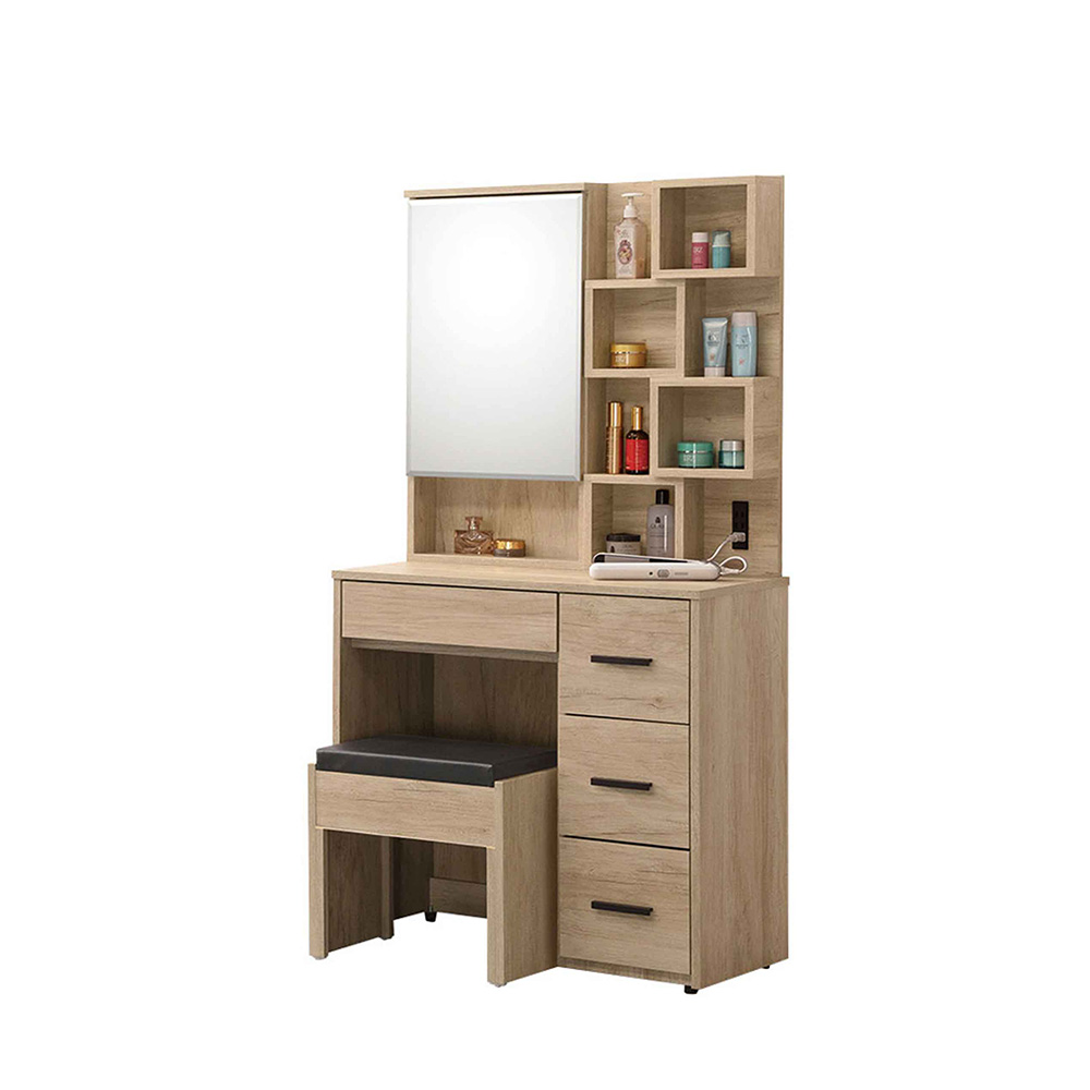 材質說明 採用台灣低甲醛木芯板,正面側面浮雕耐磨處理(鏡座高度80.5cm) (鏡框打開內附1片固定隔板可置物)