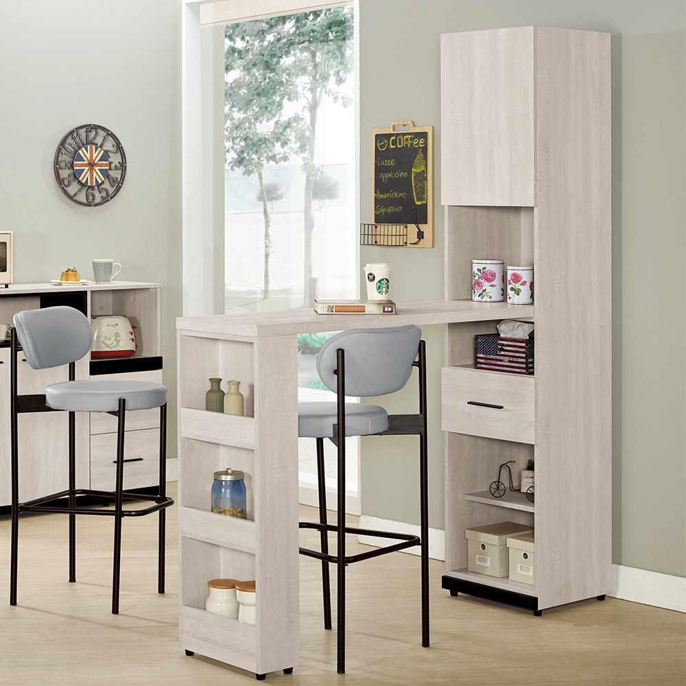 尺寸: 寬42.6x深133x高197(公分)(不分左右可任意擺放)(附2片活動隔板)(桌面尺寸:133x39cm)材質:採用MIT 防蛀環保低甲醛木心板,表面最新技術白橡木紋同調立體浮雕耐磨處理,比擬鋼刷風化木觸感,洗白橡木與霧黑配色,營造輕工業簡約風格五 金抽屜滑軌採用MIT 鋼珠滑軌,鉸鏈採時尚槍灰色油壓緩衝鉸鏈,手把採用霧黑色鋁合金軌道手把其他說明: 僅販售標示家具,不包含其他飾品