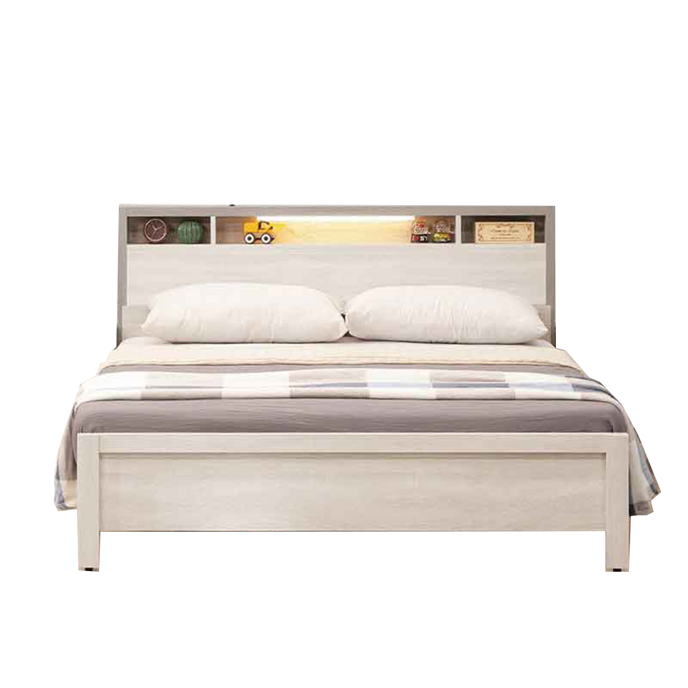 材質:正面 . 側板採用符合國際標準 F3 低甲醇防蛀木心板全包式材質,面板採用MDF同調壓紋立體浮雕強化耐磨皮,耐水材質,內部防污塗裝(尾片為實木腳製成) (床道下緣高度12.5cm)(床尾下緣高度9.5cm) (不可訂做)