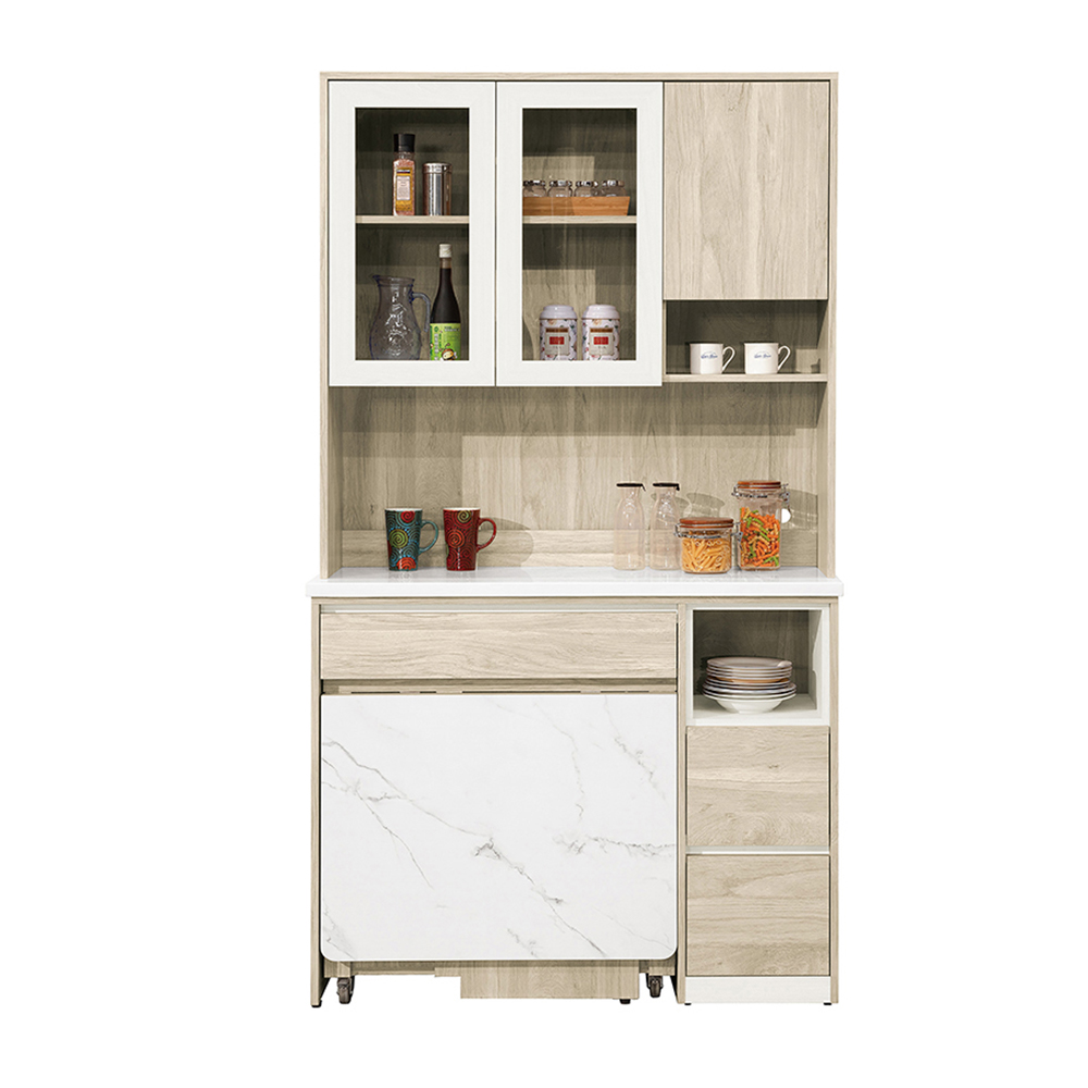 桌面採用仿大理石紋美耐皿材質,具高溫耐刮磨之特性