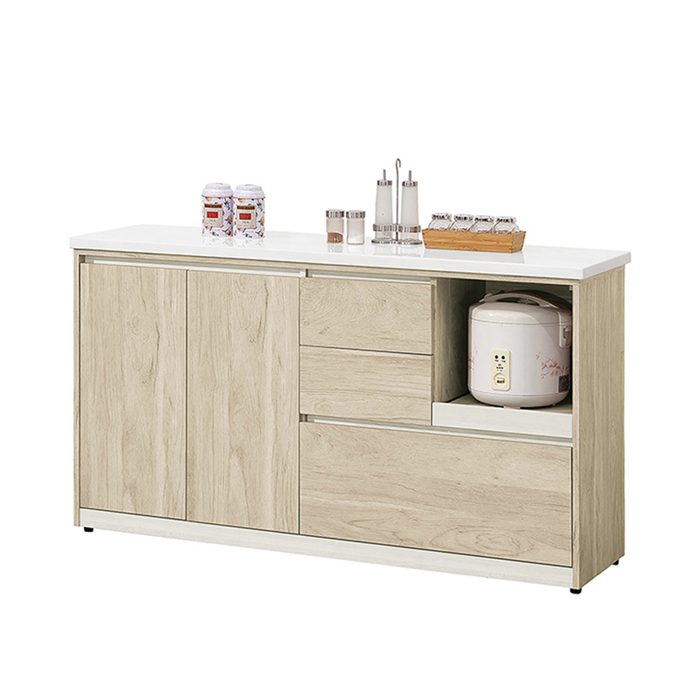 桌面採用仿大理石紋美耐皿材質,具高溫耐刮磨之特性