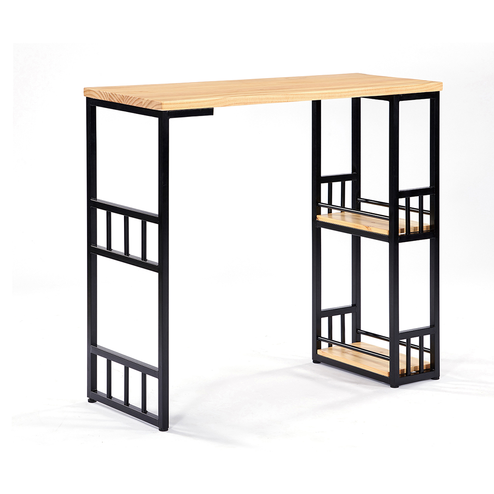 材質:3cm 厚松木實木 + 防鏽烤漆黑鐵腳架