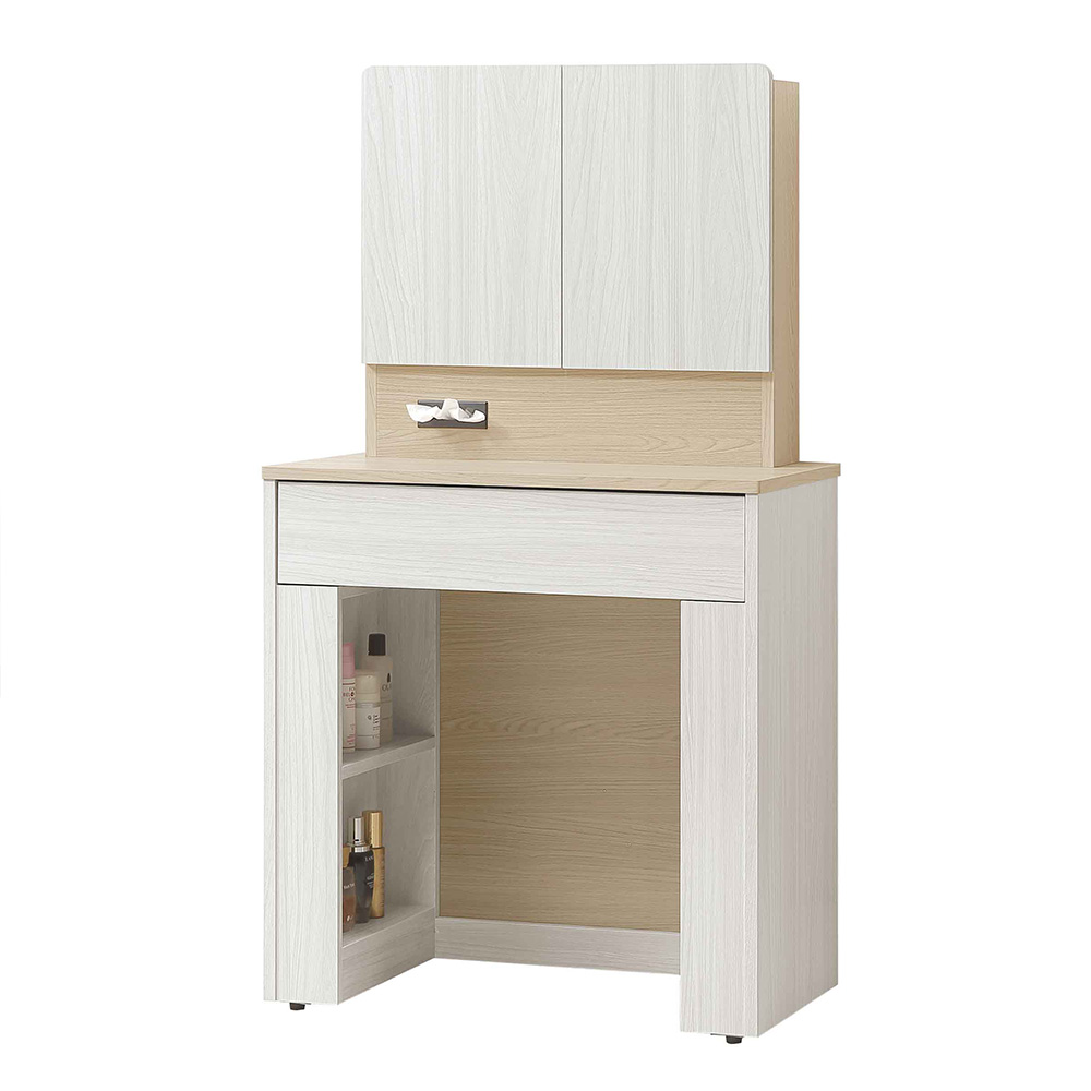 正面 . 側板 . 桌面採用國際低甲醛木心板 表面採專利技術耐磨木紋同調浮雕壓紋 . 觸感猶如實木 側板採用木心板曲線弧形加工一體成型
