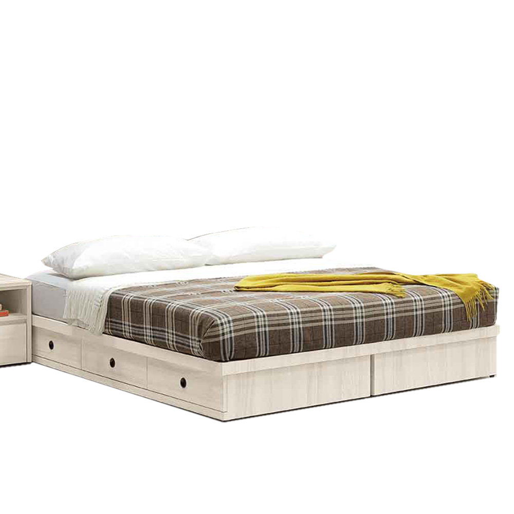 床底抽屜為二節式鋼珠滑軌,其餘三節式鋼珠滑軌 衣櫃抽屜底板 5mm;抽屜採斜邊手把設計,拉取更順手