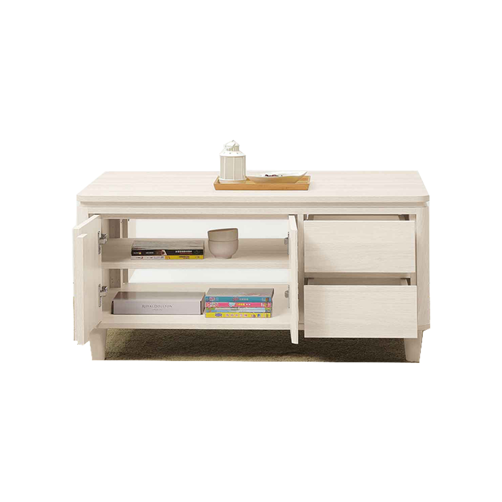 材質:材質:高級防蛀全木心板 ( 符合國際標準低甲醛 )PVC 耐磨耐水木紋紙 ( 淺橡木 )(NOP,符合加州 65 法案 )塗 裝 1.0mm 厚封邊設計 1.0mm封 邊 邊几 . 茶几抽屜為二節式鋼珠滑軌,其餘三節式鋼珠滑軌 邊几 .