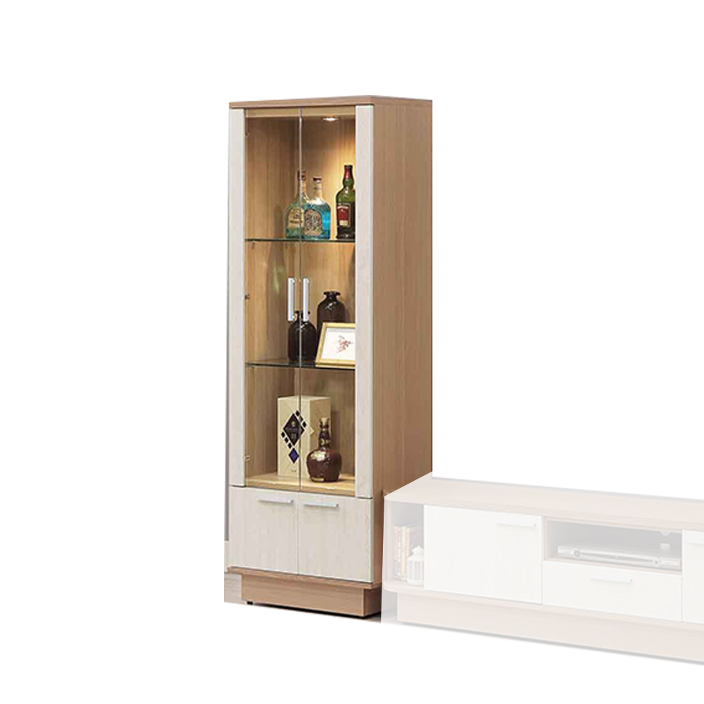 尺寸:寬60.6x深40x高181.2(公分)(門片5mm強化玻璃,附2片8mm玻璃隔板)(附LED省電燈具,採用燈上開關)