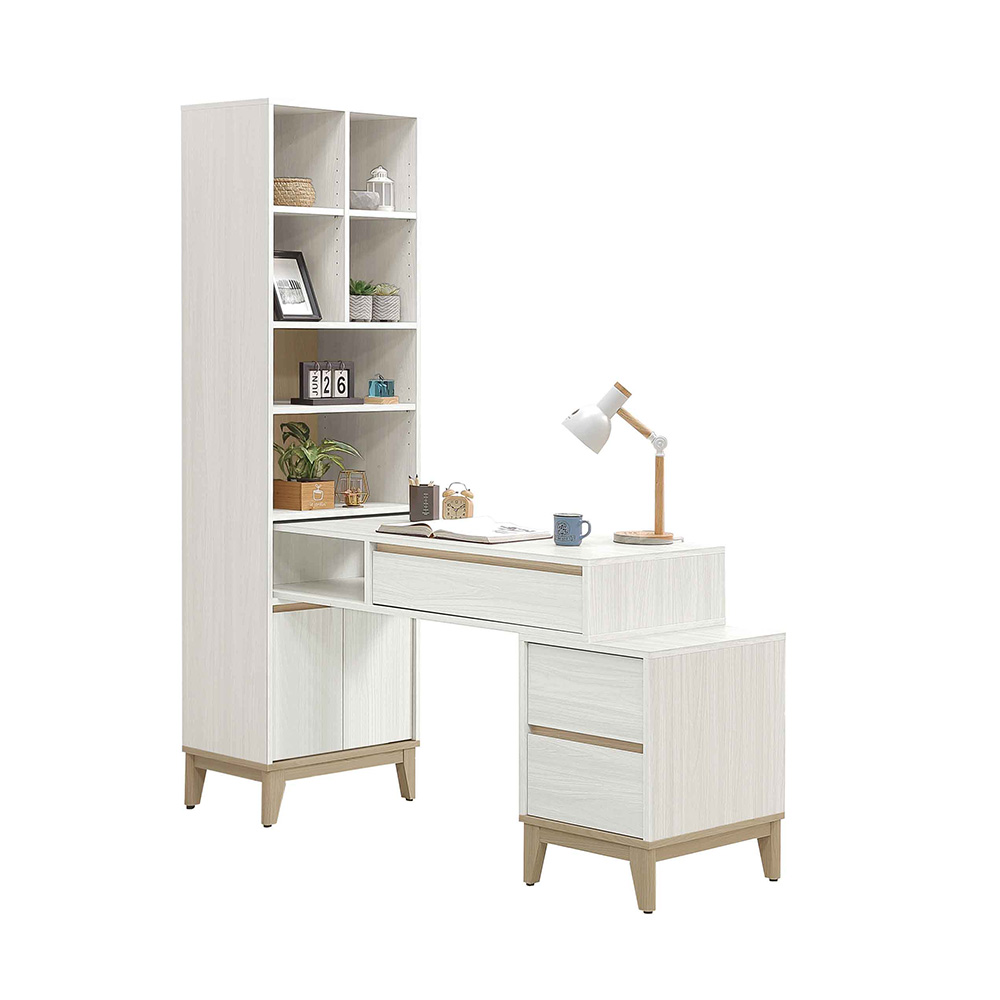 尺寸:寬120~160x深60x高197(公分)(附3片活動隔板)(不含椅)(抽屜櫃可上下對換.不分左右方向)
