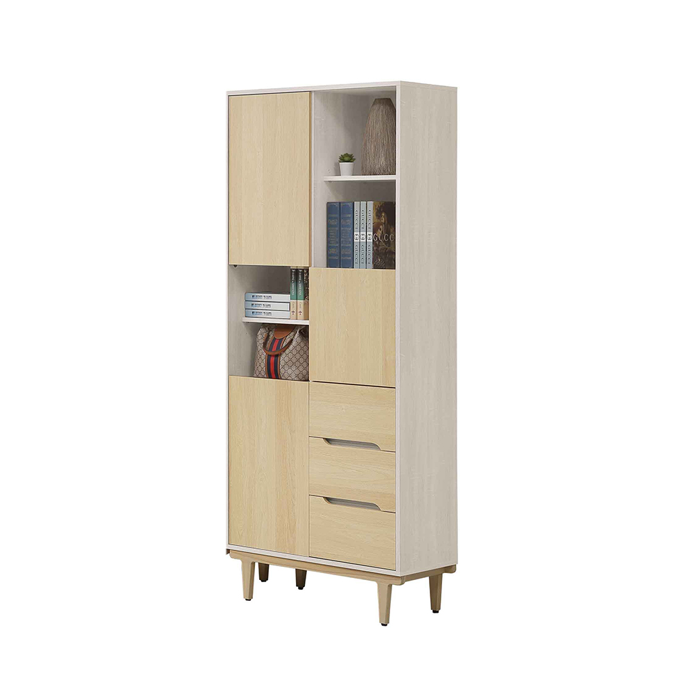 材質:正面 . 側板 . 桌面板為木心板 . 腳架採用實木腳架, 書櫃腳高度 19.5cm.下緣高 16cm抽屜採用高級鋼珠滑軌 門片採用不鏽鋼緩衝油壓後鈕 採釘附式美背處理