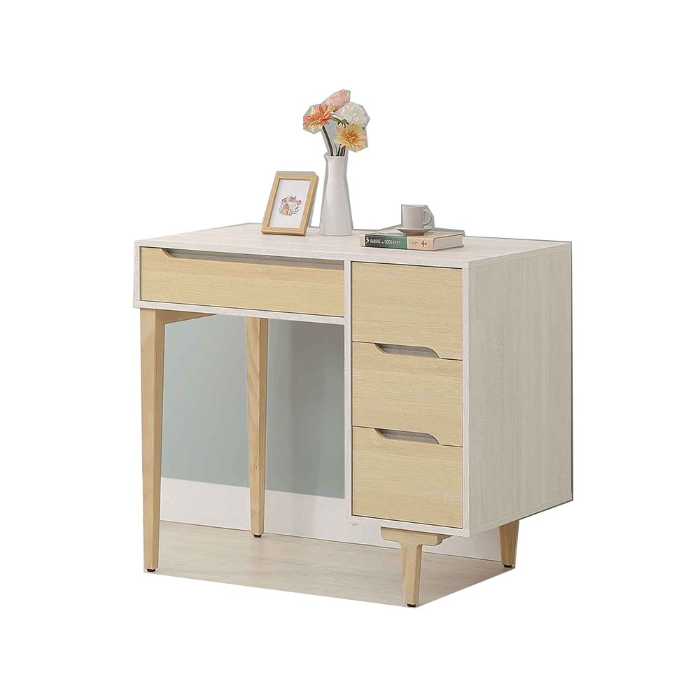 材質:正面 . 側板 . 桌面板為木心板 . 腳架採用實木腳架, 書櫃腳高度 19.5cm.下緣高 16cm抽屜採用高級鋼珠滑軌 門片採用不鏽鋼緩衝油壓後鈕 採釘附式美背處理
