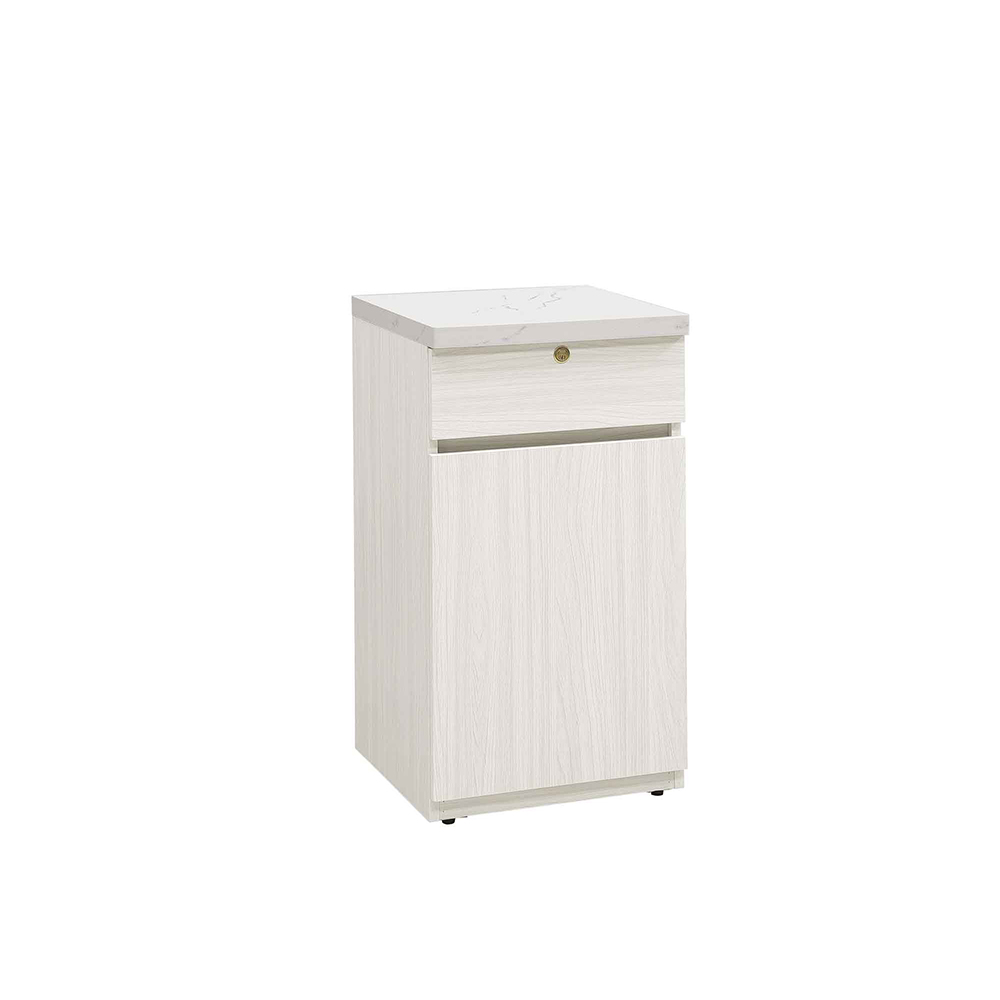 材質:正面 . 側板 . 桌面採用國際低甲醛木心板 表面專利技術耐磨木紋同調浮雕壓紋 . 觸感猶如實木 桌面採用仿大理石紋美耐皿材質具高溫耐括磨之特性 採用 PU. 耐磨塗裝 抽屜採用三截式快拆鋼珠滑軌 後鈕採用不鏽鋼油壓緩衝後鈕 採用美背處理