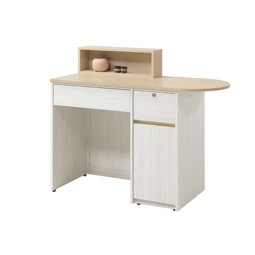 尺寸:寬120x深50x高102(公分)(桌面可左右互換.附1個安全鎖)(含桌上架.不含圓邊收納架)(附1片活動隔板)