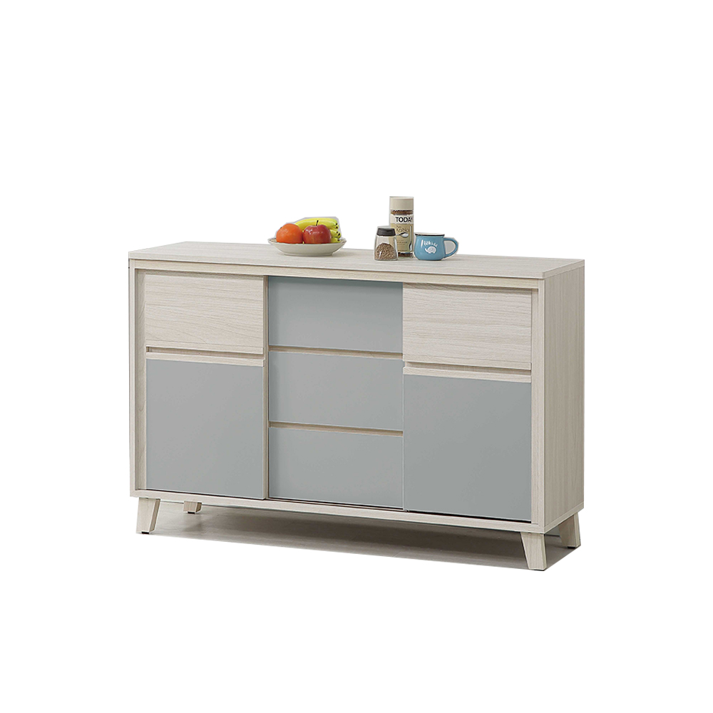 材質:正面 . 側面 . 面板為木心板 木心板採用符合標準低甲醛 . 耐磨皮 . 耐水材質 腳採用實木腳,腳高 11cm 抽屜抽牆為木心板 . 抽底 1 分足夾板 抽屜採用鋼珠滑軌 開門採用油壓緩衝白鐵後鈕 餐櫃推門滑軌零故障 釘附式美背處理