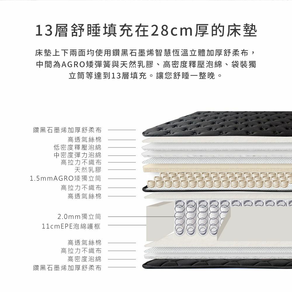 >13層舒睡填充28cm厚床墊