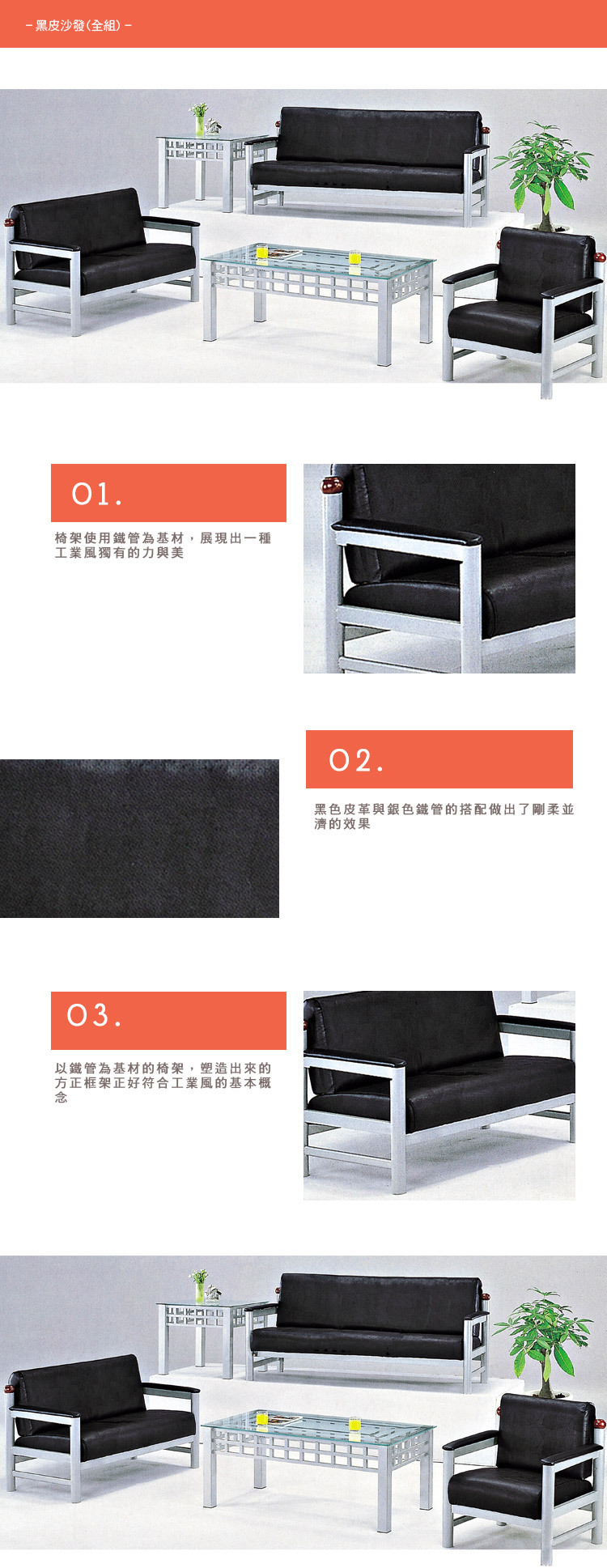 黑皮沙發(全組)【客廳沙發/皮革沙發】