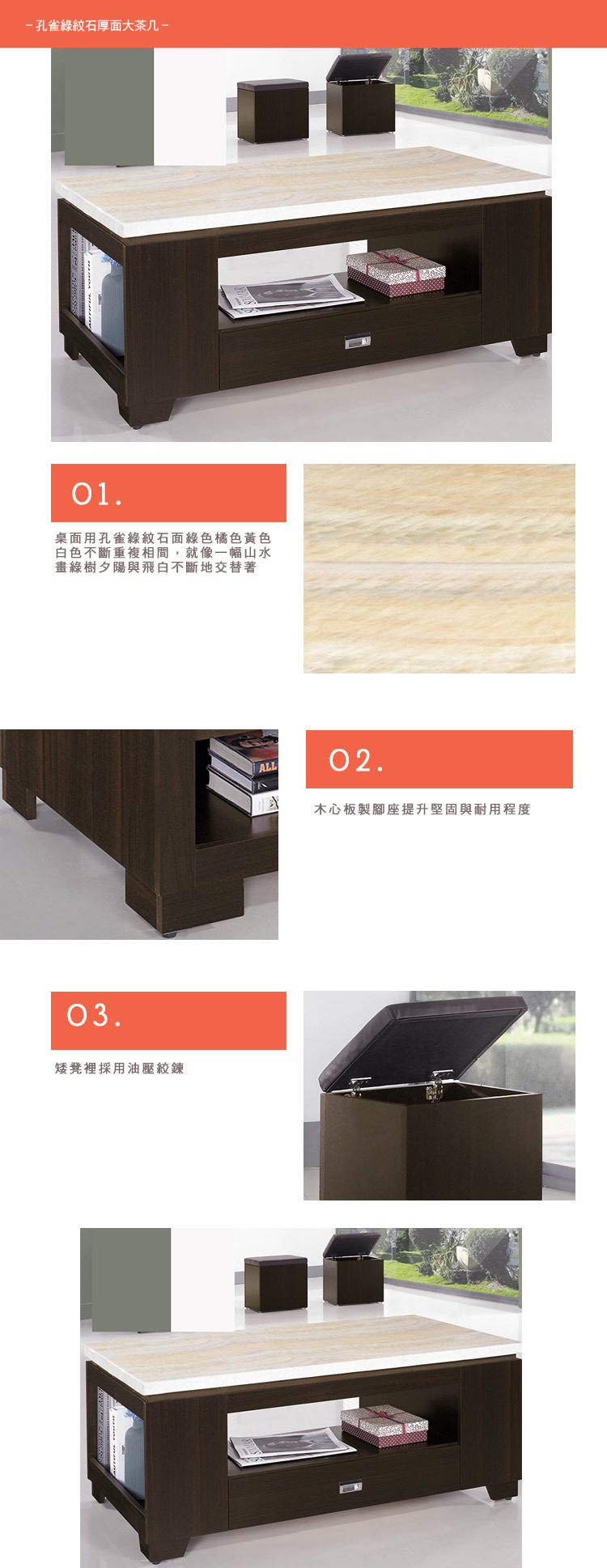 孔雀綠紋石厚面大茶几