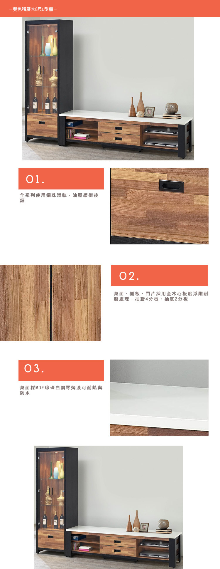桌面採用MDF珍珠白鋼琴烤漆耐熱防水
