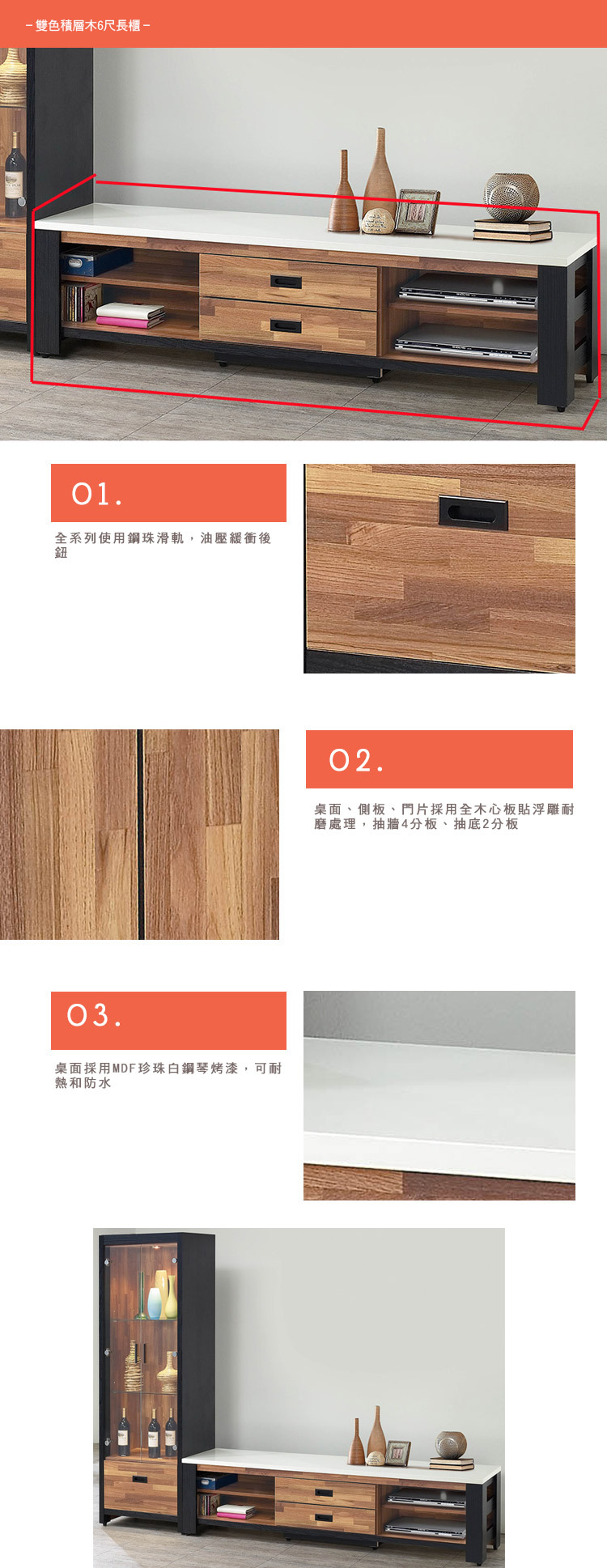 桌面採用MDF珍珠白鋼琴烤漆耐熱防水